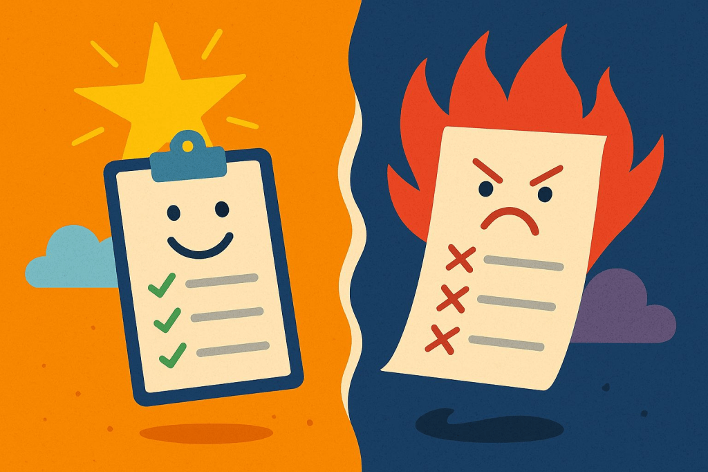 🟡 How to track: Survey with prompts like: This process left me feeling…” (energized, neutral, drained, frustrated, etc.). Add optional sentiment analysis on open-text feedback.