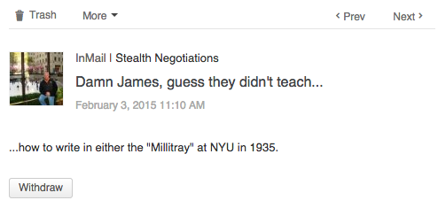 So I sent an InMail (LinkedIn, you now owe me one InMail):